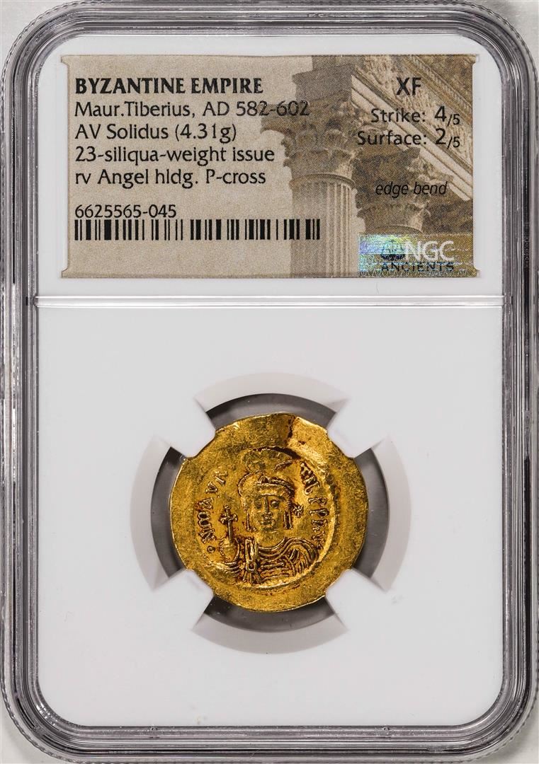 One AD 582-602 Byzantine Empire Maurice Tiberius AV Solidus Ancient Gold Coin NGC XF. NGC Certified.