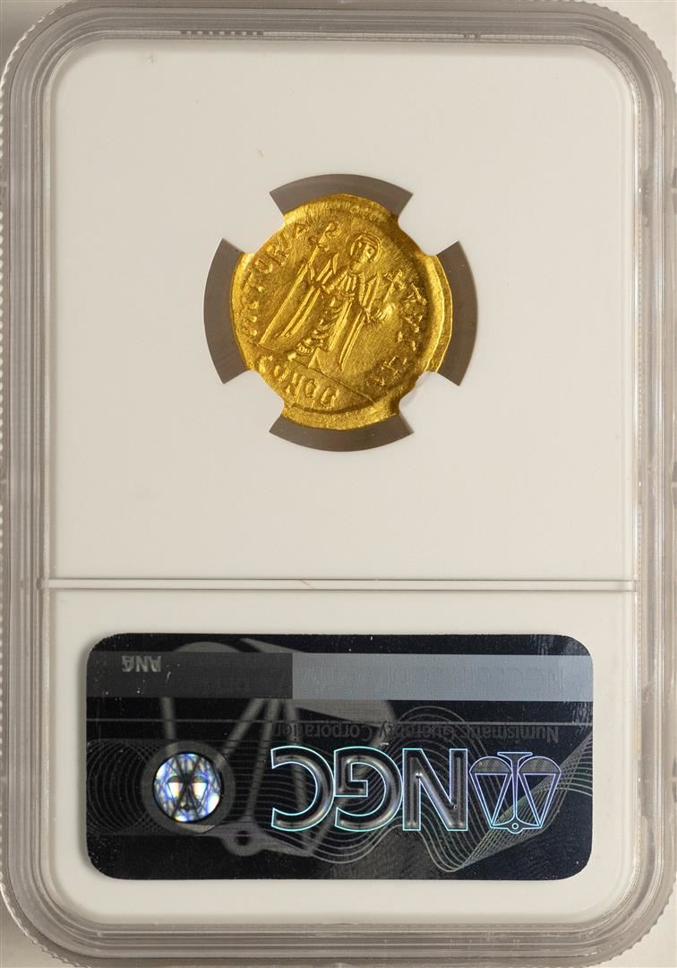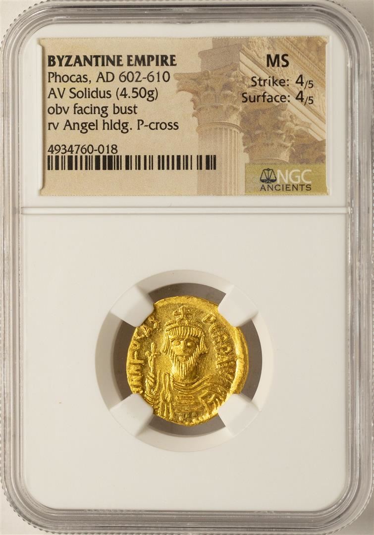 One AD 602-610 Phocas Byzantine Empire Solidus Ancient Gold Coin NGC MS. NGC Certified.