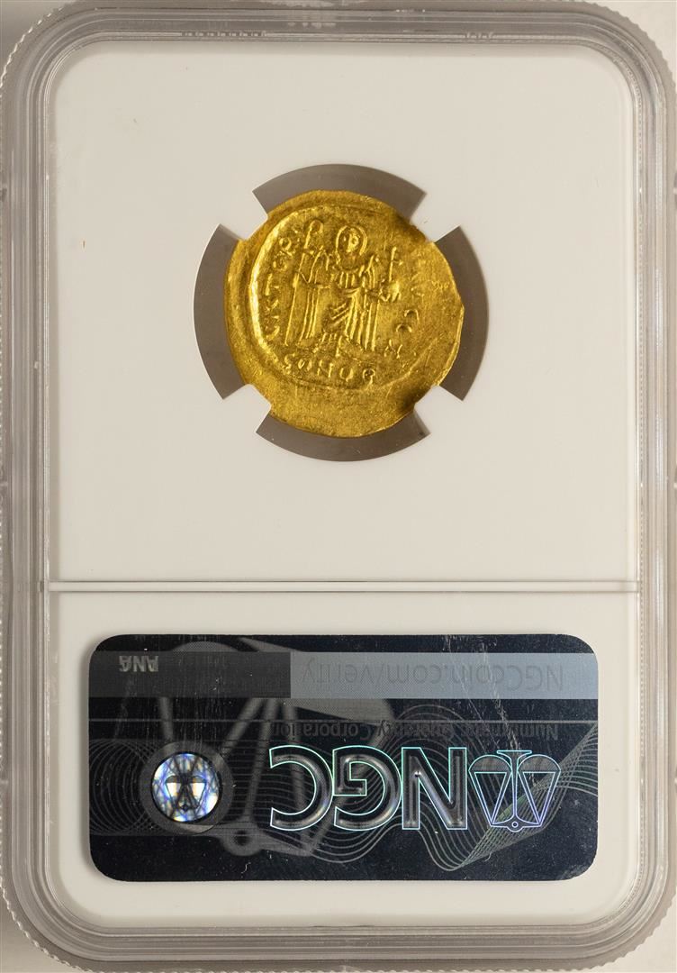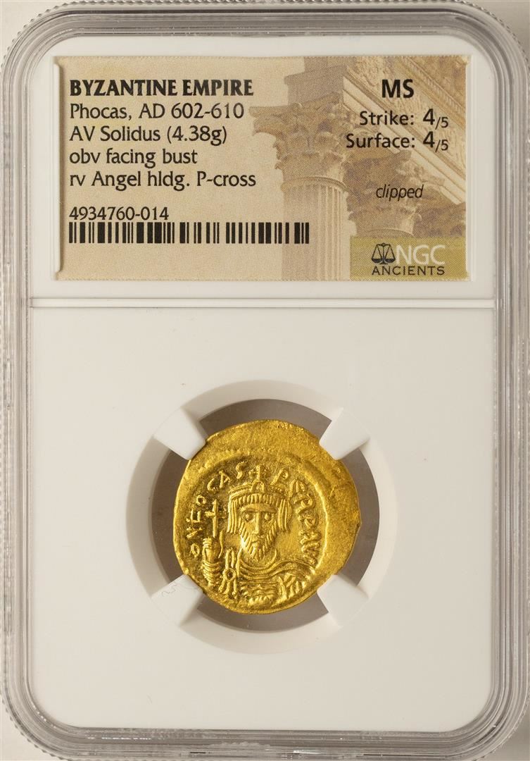 One AD 602-610 Phocas Byzantine Empire Solidus Ancient Gold Coin NGC MS. NGC Certified.