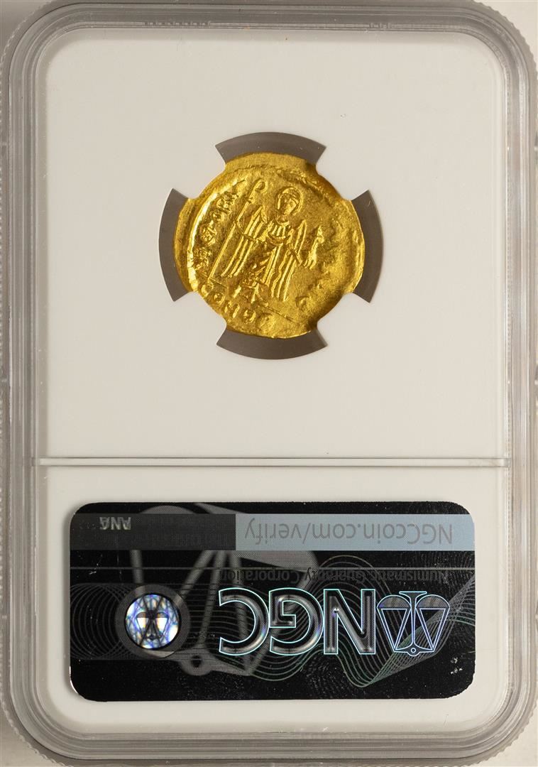 One AD 602-610 Phocas Byzantine Empire Solidus Ancient Gold Coin NGC MS. NGC Certified.
