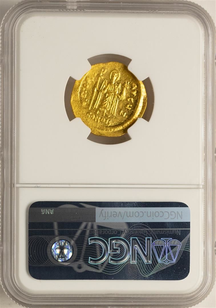 One AD 602-610 Phocas Byzantine Empire Solidus Ancient Gold Coin NGC MS. NGC Certified.