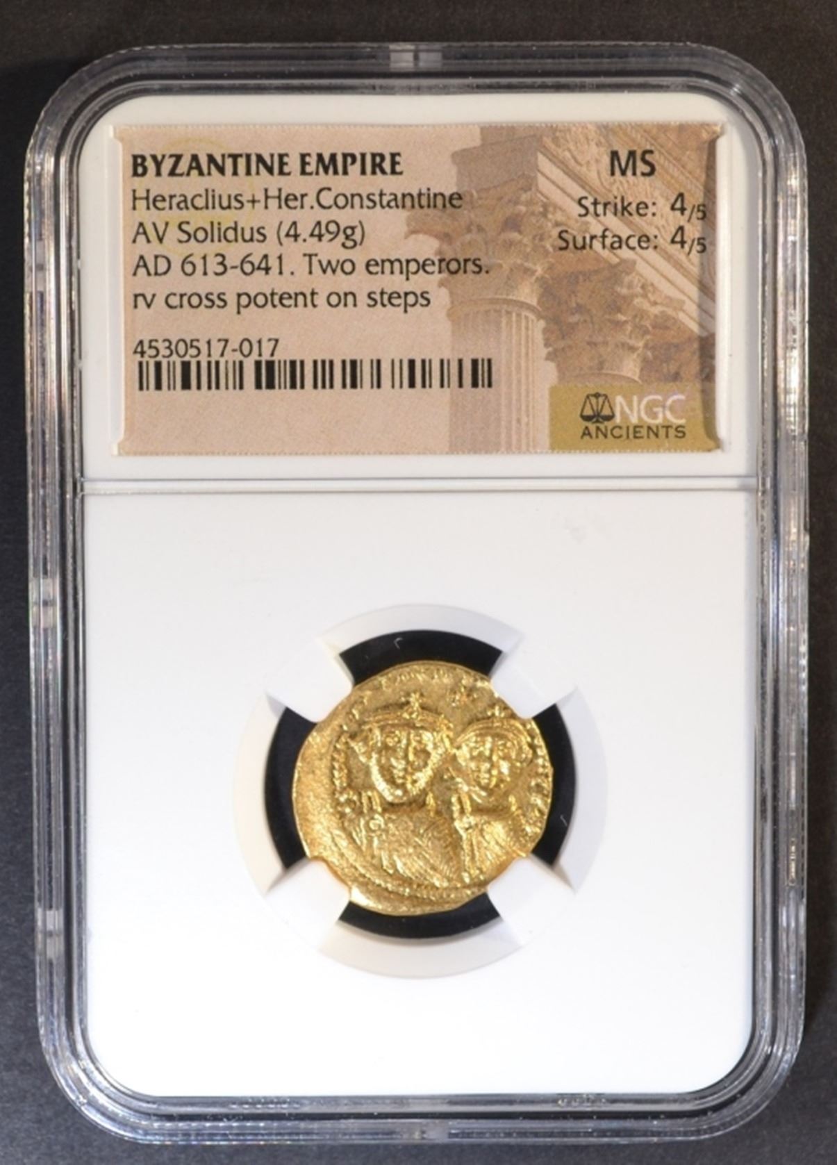 HERACLIUS + CONSTANTINE AV SOLIDUS. ESTIMATE $1600 - $1800.