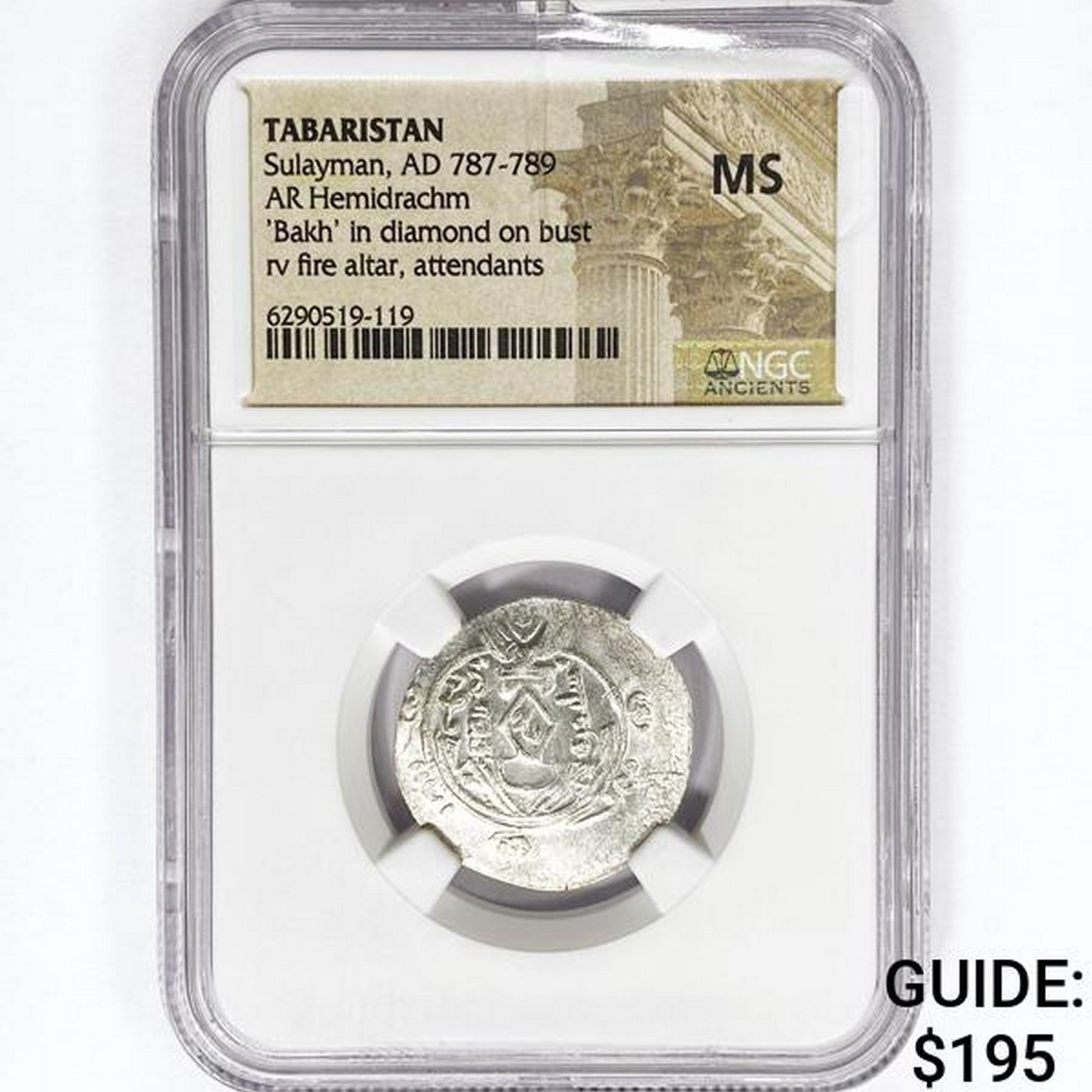 AD 787-789 Tabaristan AR Hemidrachm NGC MS