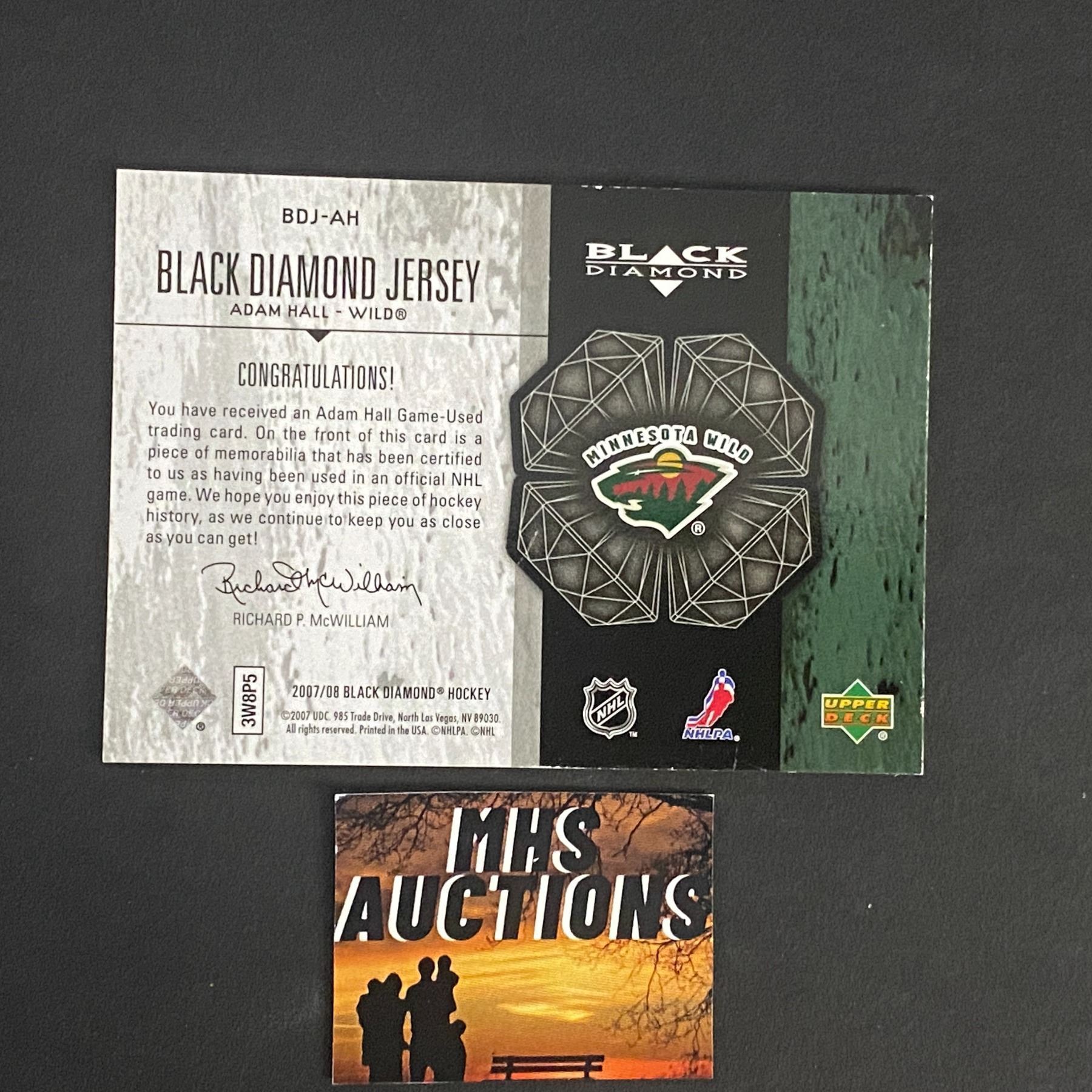 ADAM HALL 2007-08 BLACK DIAMOND JERSEY CARD