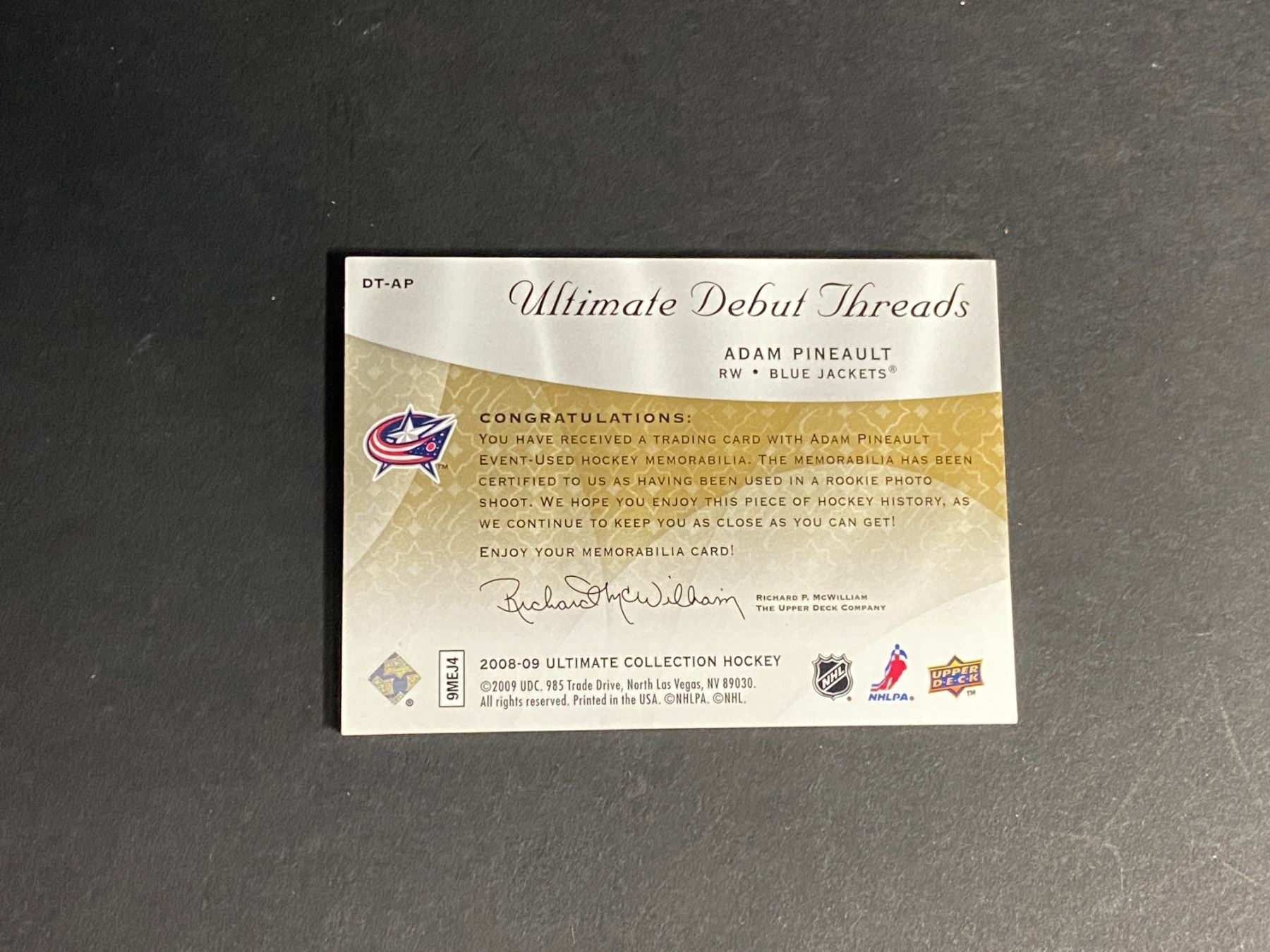 ADAM PINEAULT 2008/09 ULTIMATE COLLECTION PATCH CARD #D/50