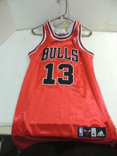ADDIAS CHICAGO BULLS RED JERSEY JOKIM NOAH #13. SIZE 48. AS SHOWN. VIEW PICTURE FOR DETAIL.