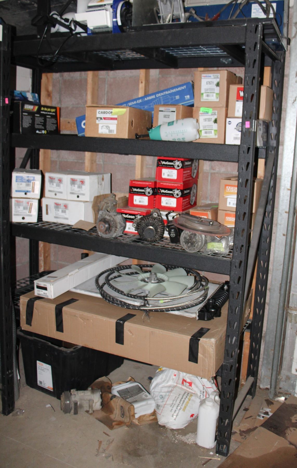 APPROX 7' TALL X 24" DEEP X 6' WIDE. CONTENTS ARE INCLUDED. MUST TAKE ALL. LOTS OF VEHICLE PARTS AND GENERATOR - ALTERNATOR - STARTER - TESTER (ASSUME NOT WORKING). ALL VEHICLE PARTS ARE LABELED RETURN, CORE, DEFECTIVE, OR WARRANTY