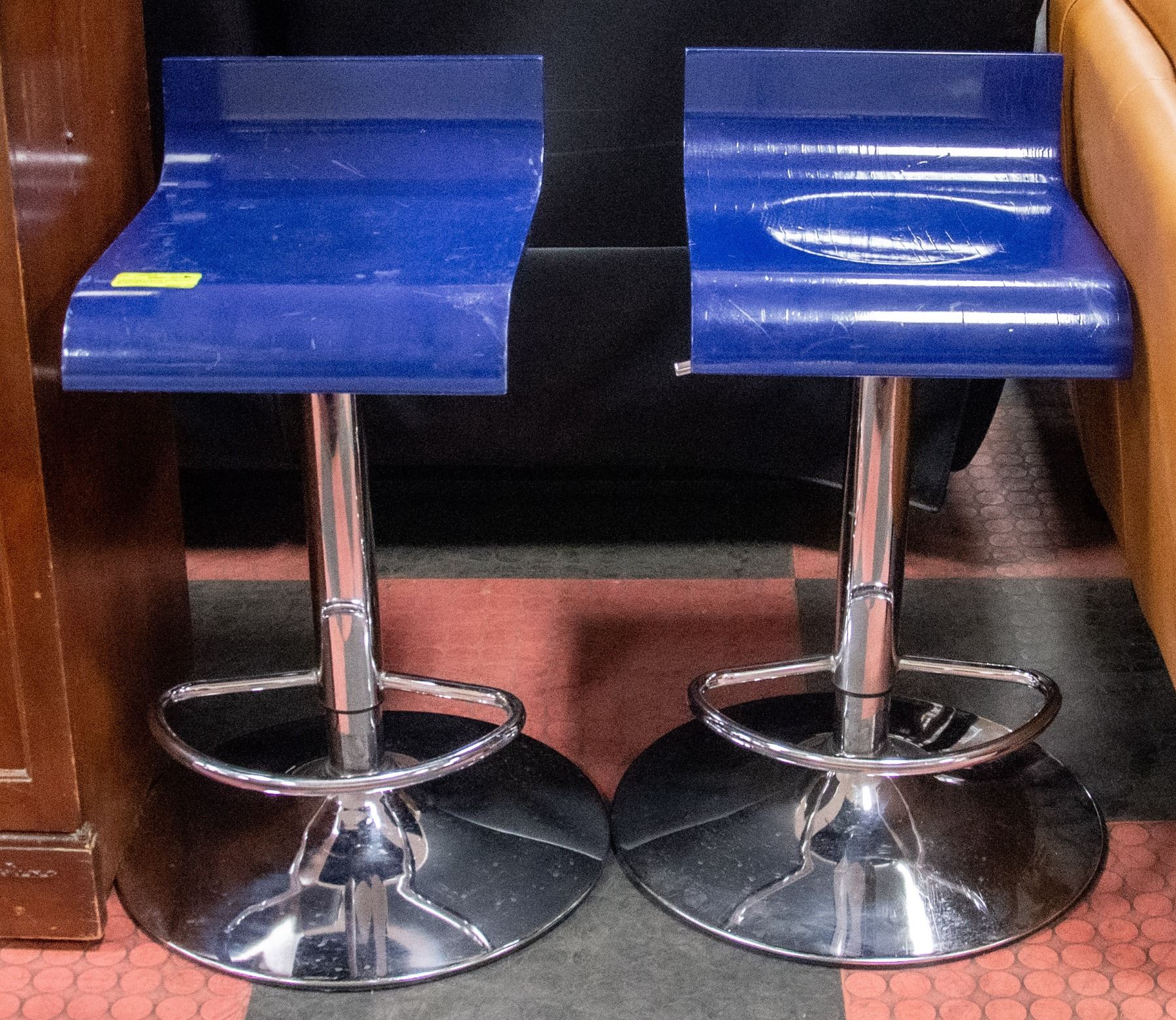ADJUSTABLE SWIVEL-HYDRAULIC BLUE + CHROME STOOLS