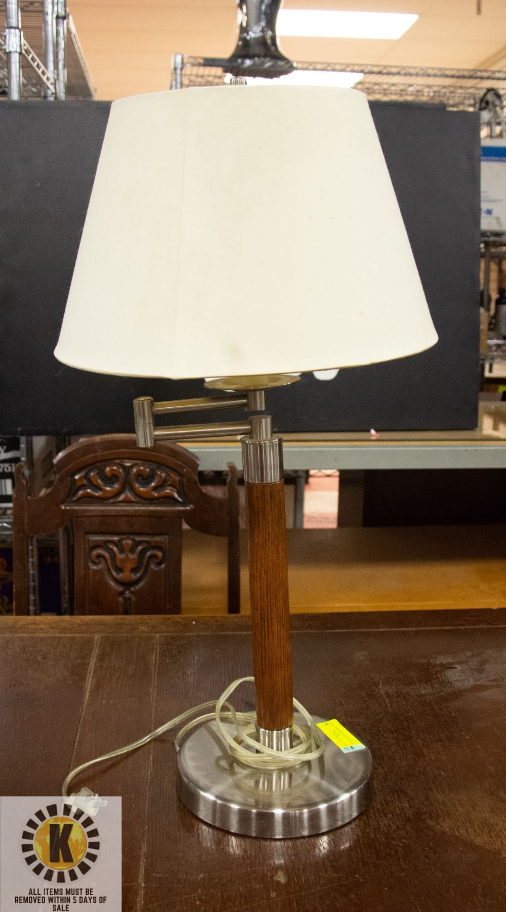 ADJUSTABLE WOOD SIDE TABLE LAMP 28  TALL