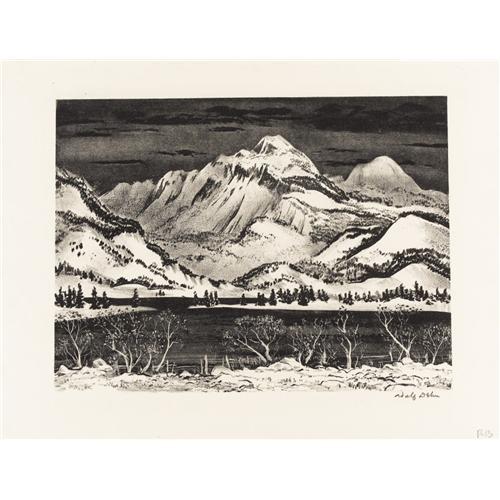 <B>ADOLF DEHN (1895-1968)</B></I><BR><I>A Lake in the Mountains</B></I><BR>Lithograph<BR>10in. x 13in.<BR>Signed lower right<BR><BR>Adolph Dehn was a master of lithography. This print was distributed by the Associated American Artists (AAA).<BR><BR>Provenance:<BR>Collection of the Heard Museum, McKinney, Texas<BR><BR> <B>Condition Report:</B> Excellent condition. Unframed.<BR><BR><b>Shipping:</b> Requires 3rd Party Shipping (<a target="_blank" href="http://www.heritageauctions.com/common/shipping.php">view shipping information</a>)