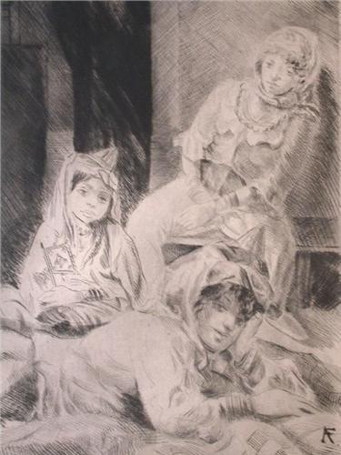 And also signed in the plate with the artist initials "AF"at the lower right corner of the plate.