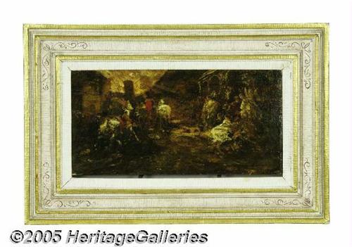 <B>ADOLPHE JOSEPH THOMAS MONTICELLI (French 1824-1886)</B></I><BR>Conversion of St. Paul<BR>Oil on panel<BR>7.5in. x 15.25in. <BR>Signed lower left: M<BR>rovenance: Josef Herman; [Bonham's Knightsbridge, The Josef Herman Collection, November, 2000 lot 26]; private collection, Middlesex, England<BR><BR>Condition Report: Painting has been mounted on a mahogany cradle, 4in. crack lower right and 5in. crack upper left (inpainted), thick layer of old yellowed varnish on surface, extensive inpainting in figures lower right and center left, scattered specks of inpaint in sky<BR>