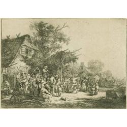 Das Fest unter der Laube. Radierung um 1652. B. 47, Dav. VI und G. VII. - Mit dem Namenszug in der Platte. Größe: 12,6 x 17,3 cm. Schwach stockfleckig. Breitrandiger Abdruck.