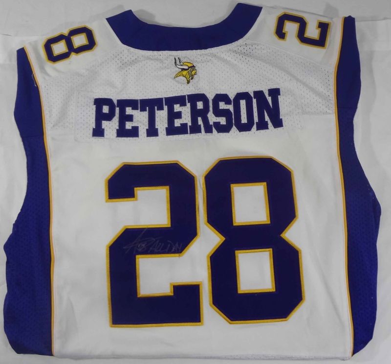 NFL NIKE VIKINGS JERSEY #28 SIGNED WITH SILVER SHARPIE BY ADRIAN PETERSON. NO COA. EST 300.00-350.00