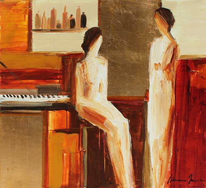 SIGNED ORIGINAL ACRYLIC ON CANVAS HAND SIGNED BY THE ARTIST ADRIANA NAVEH- "AT THE BAR"
