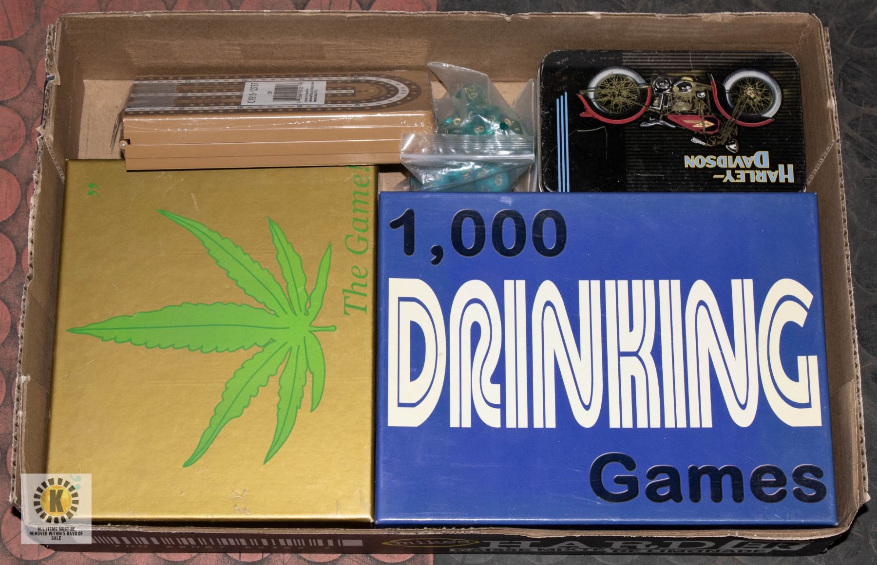 CARDS AND CRIB BOARD AND DICE **ALL ITEMS MUST BE REMOVED BY 5PM SATURDAY, APRIL 26TH 2025. ALL REMAINING ITEMS WILL BE SUBJECT TO A $6.00 PER DAY STORAGE CHARGE. ANY ITEMS REMAINING AFTER MONDAY, MAY 12TH 2025 WILL BE CONSIDERED FORFEITED. NO REFUNDS WILL BE ISSUED FOR FORFEITED ITEMS. TO SCHEDULE A PICK UP APPOINTMENT CLICK HERE