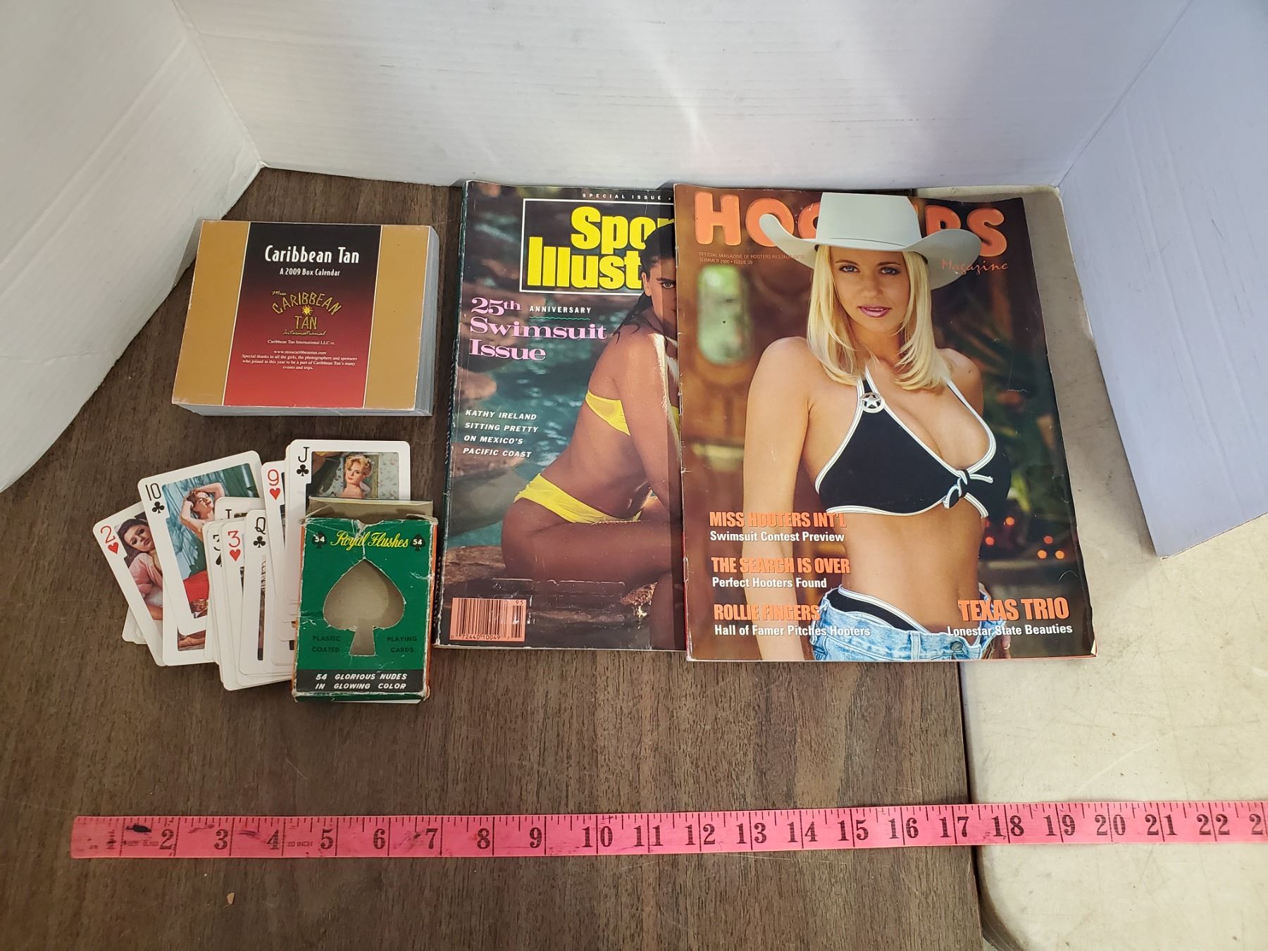 ADULT PLAYING CARDS + 2009 PIN UP CALENDAR W/ HOOTERS & SWIMSUIT ILLUSTRATED MAGAZINES