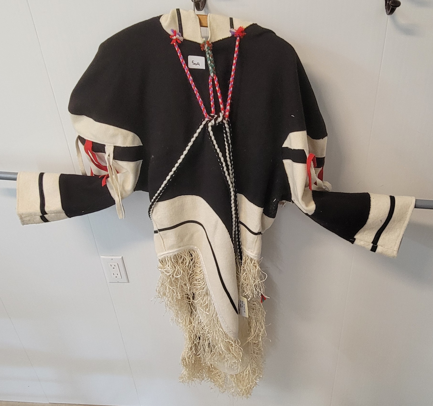 NOTE: APPROX 21 X 30IN W/OUT HOOD - SM SZ - MADE IN BAKER LAKE(?) - WOOL W/ LEATHER - SIGNS OF WEAR