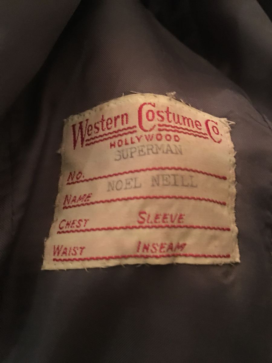 The source and original Western Costume Company label printed SUPERMAN and NOEL NEILL is solid provenance, but compare this yourself to the two photos. Look at the shade of gray, the pattern, and the way the lapel is shaped and sewn together at an angle.