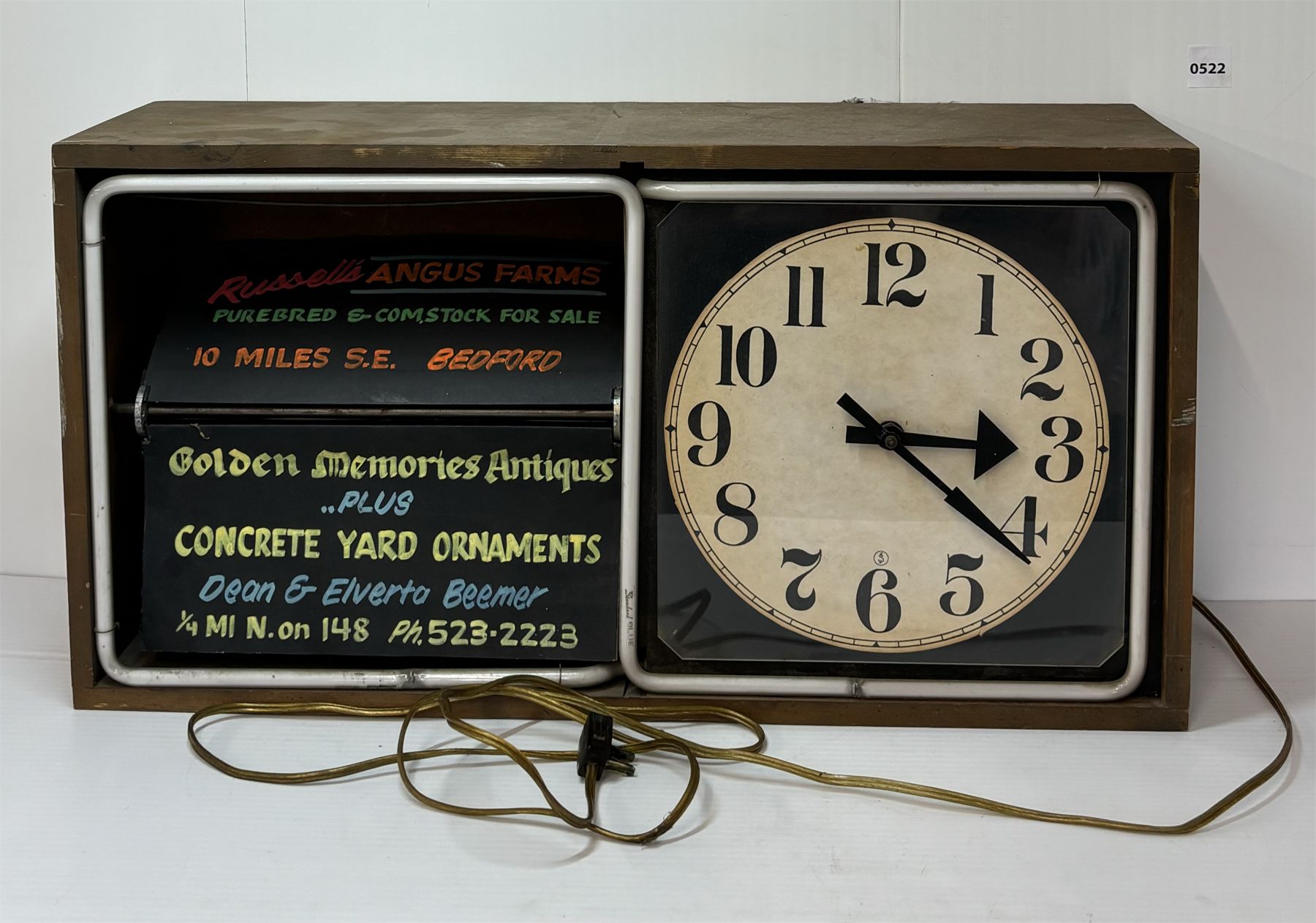 NOTE: ADVERTISEMENTS TURN - LIGHTS NOT WORKING - CLOCK NOT MOVING - 7 X 7 X 24IN