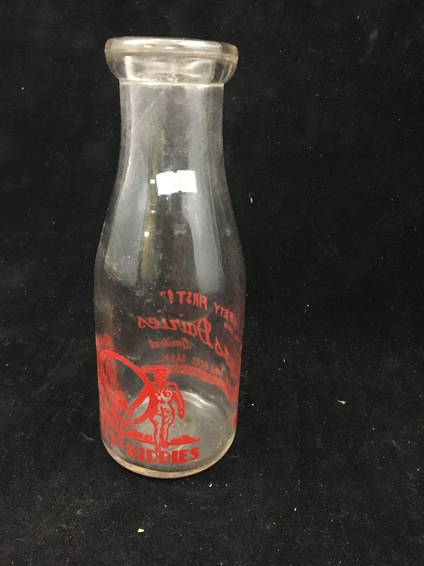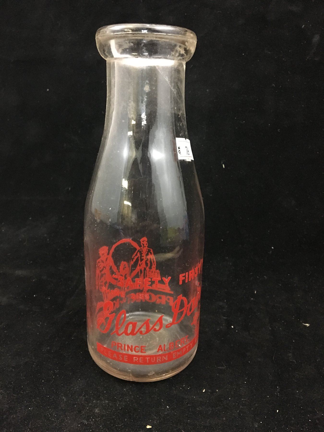 ADVERTISING MILK BOTTLE (PRINCE ALBERT SASK GLASS DAIRIES)