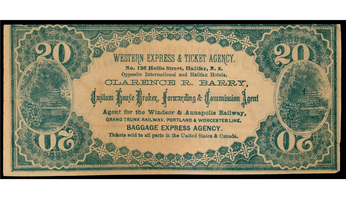 ADVERTISING Note. CLARENCE R. BERRY. St. John, NB. Custom House Broker. $20.00. Vlack-4660. The Vlack plate note and one of only three known to Mr. Vlack. Ex. MOORE's Oct. 27-29, 2005 Auction. Lot #1393.