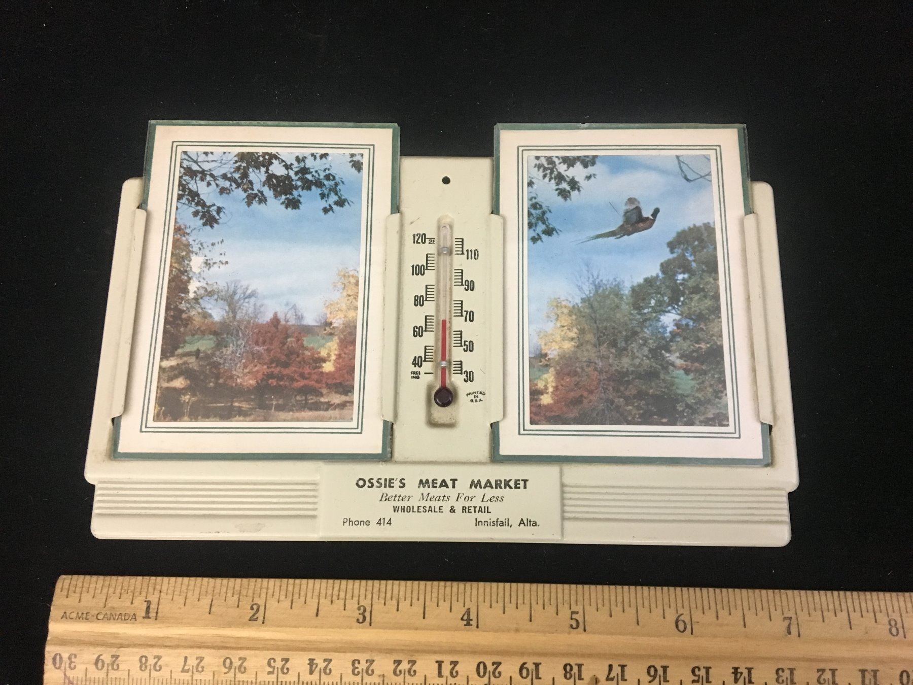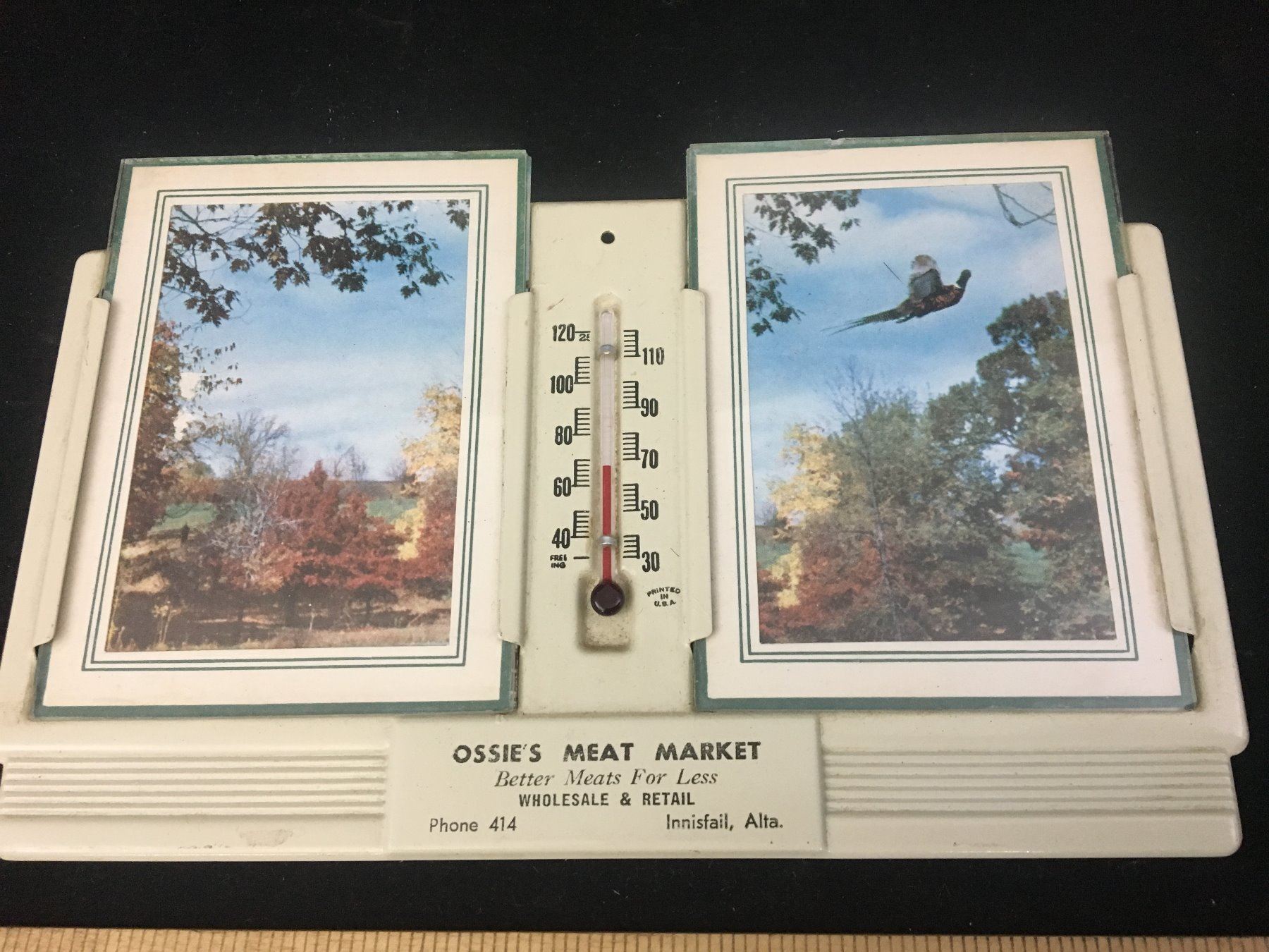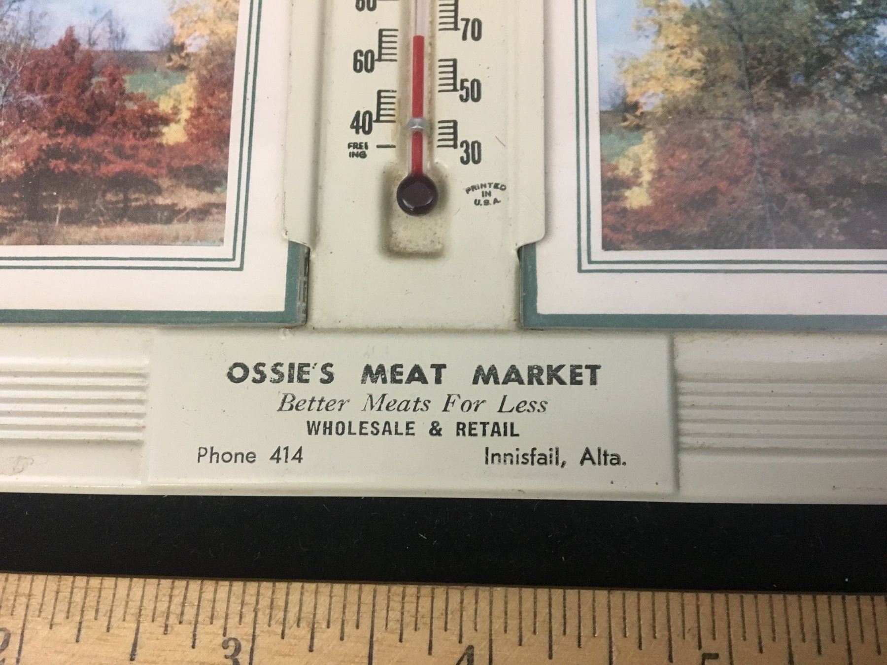 ADVERTISING THERMOMETER (OSSIES MEAT IN INNISFAIL ALBERTA) *VINTAGE*