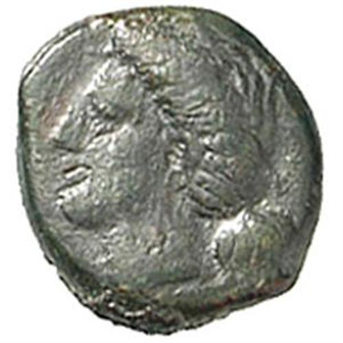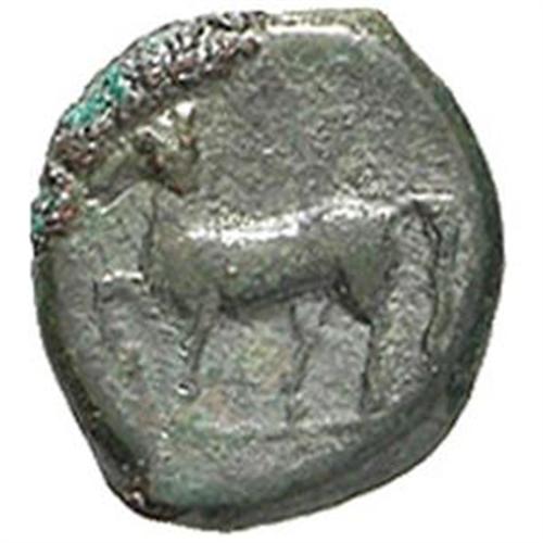 Sicilia Punica. AE 15 mm. 340-320 a.C. D/ Testa di Tanit a sinistra. R/ Cavallo stante a sinistra. gr. 3.80 AE. Patina verde. Un'ossidazione sul bordo. BB+.