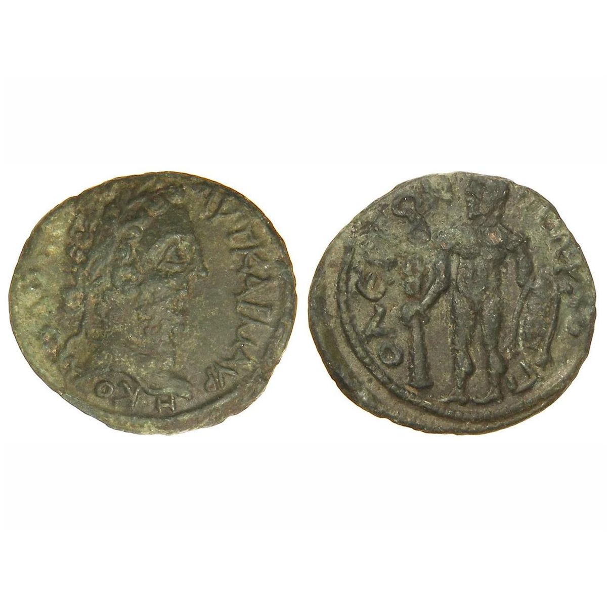 AE 20. - 177-180 d.C. - CÓMODO. - LIDIA. - Anv.: Busto laureado a derecha, alrededor leyenda. Rev.: Hércules en pie a izquierda con clava y piel de león, alrededor leyenda. 4,40 grs. AE. Pátina verde. GIC-2001 sim. (MBC+). - -