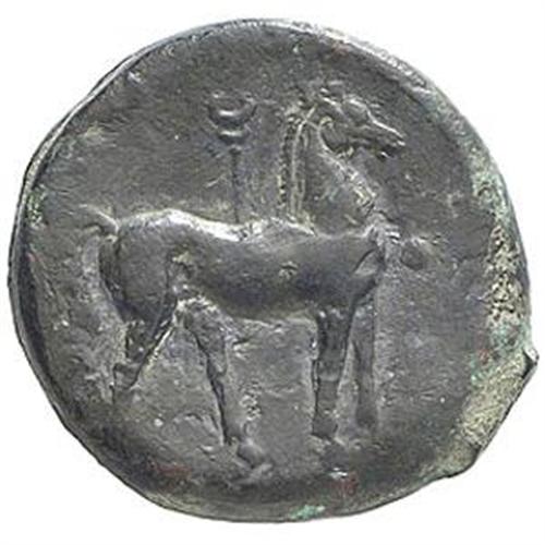 Mondo Greco. Sicilia Punica. AE 22 mm. III secolo a.C. D/ Cavallo stante a destra. Sopra, caduceo. Davanti, un globetto. R/ Albero di palma. Cfr. Muller II, 104, 314. gr. 8.77 AE. Bel BB+.