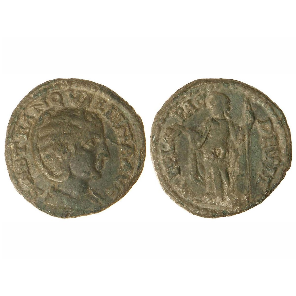 AE-24. - 241-244 d.C. - TRANQUILINA. - TRACIA. - Anv.: SAB. TRANQVILLINA AVG. Busto a derecha. Rev.: FEL. PAC. DEVLT. Figura en pie a izquierda. 8,5 grs. AE. Pátina verde. ºMBC+. - -