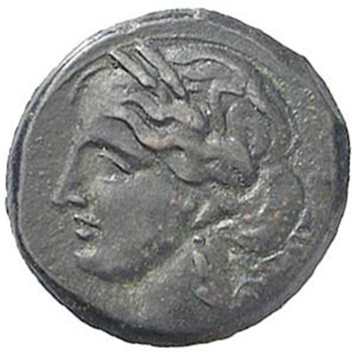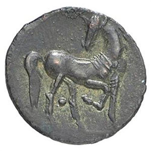 Mondo Greco. Sardegna Punica. AE 24 mm. 264-241 a.C. D/ Testa di Kore a sinistra. R/ Cavallo stante a destra, retrospiciente. Tra le zampe posteriori, un globetto. Piras manca. Cfr. Muller 231 var. gr. 8.96 R. AE. Bel BB+/qSPL. Di qualit eccellente per il tipo.