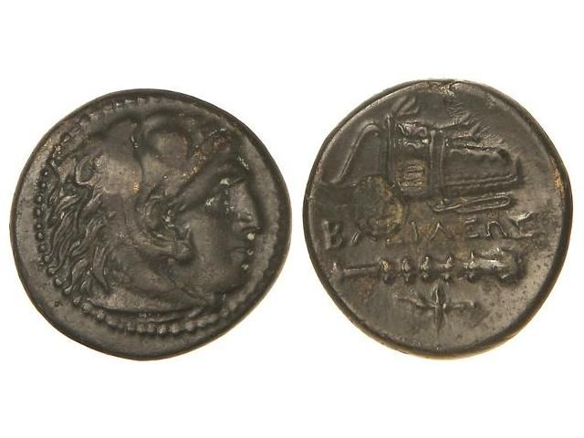 AE. 336-323 a.C. ALEJANDRO MAGNO. MACEDONIA. Anv.: Cabeza de Hércules con piel de león a derecha. Rev.: Maza, arco y carcaj, en medio leyenda. 5,91 grs. AE. CY-1363 var. MBC+.