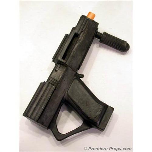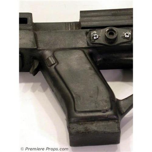 AEON FLUX - This is a Machine Hand Gun Prop (measures 6" x 10" x 2") screenused by a MILITARY GUARD . It is made of rubber and cannot be made to function in any way. The barrel tip is distressed, the trigger is cracked, and the gun is slightly distressed from use on set. Add this prop from the set of AEON FLUX to your movie memorabilia arsenal today! (AF2132)