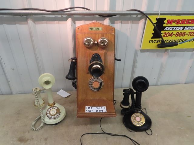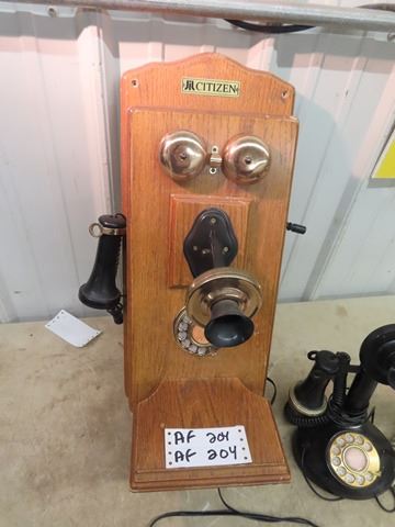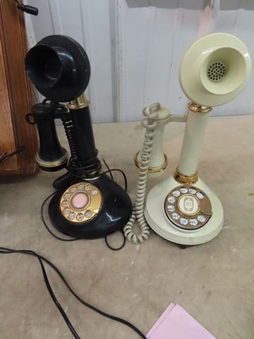 (AF) 3 Vintage Style Phones - Rotary 1) Oak Wall Mount & 2) Candlestick