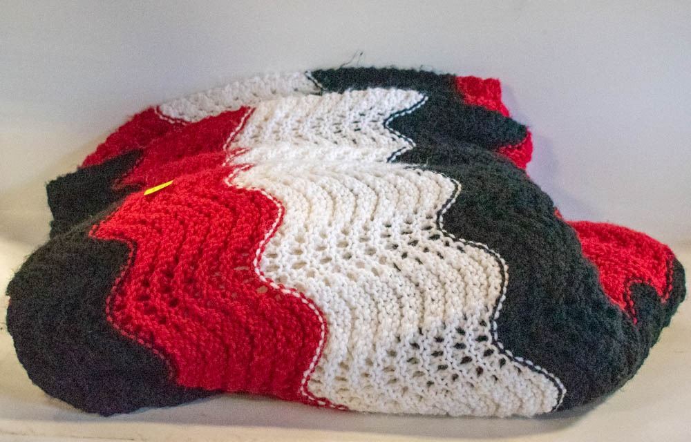 AFGHAN CROCHETED (5 FT X 6 FT) (RED, BLACK &