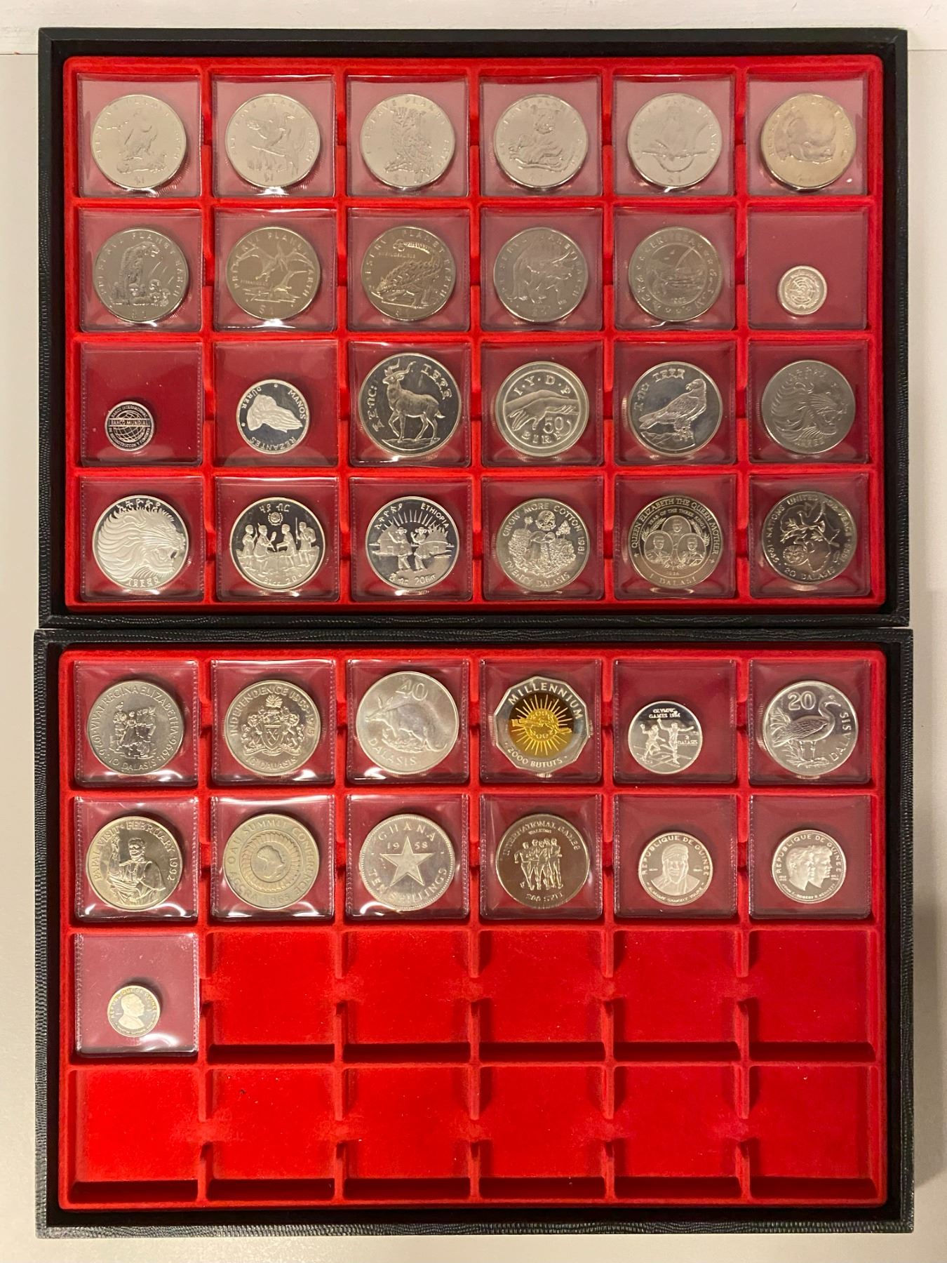 AFRICA: LOT of 37 coins, including Eritrea (11 pcs, including complete 10-piece Preserve Planet Earth series, KM-6, 10, 13, 14, 15, 16, 17, 28, 31, 34, and 37), Equatorial Guinea (3, KM-5, 6, and 7), Ethiopia (7, KM-54, 61, 62, 64, 65, 66, and 74), The Gambia (10, KM-16, 17, 18, 20, 30, 37, 46, 50, 62, and 65), Ghana (2, KM-7 and Schön-B7), and Guinea (4, KM-9, 10, 11, and 54); all are unc or proof or nearly so, in consignor's 2x2 flips, many are silver, viewing recommended; retail value $1000, lot of 37 items, ex Dr. Wolfgang Schuster Collection.