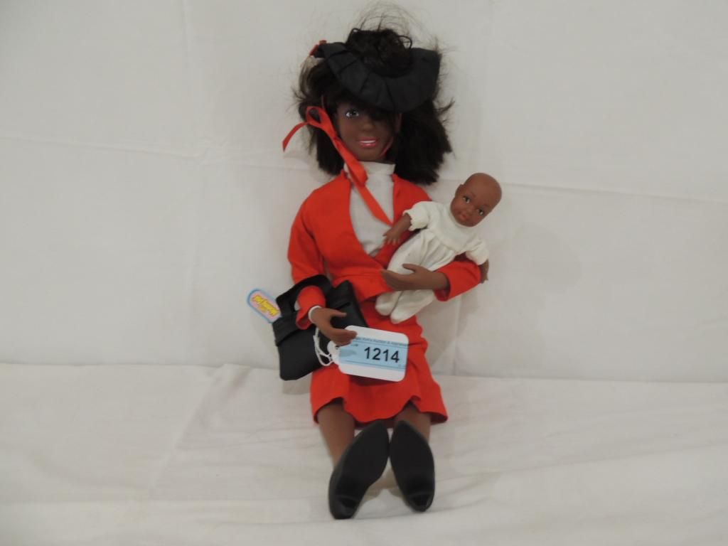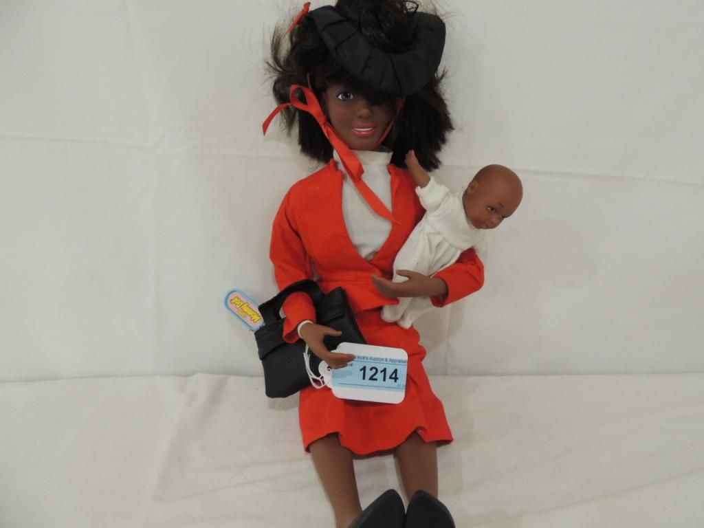 20" DOLL AFRICAN AMERICAN MOMMY DOLL. WITH BABY DOLL. AS SHOWN. SEE PHOTO FOR MORE DETAILS.