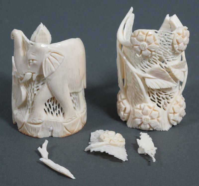 -with pierced and carved elephant and floral designs in relief. Condition noted.