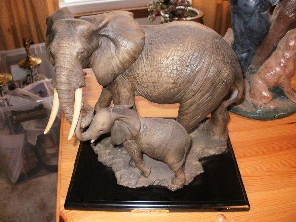 AFRICAN ELEPHANT AND BABY, FINE ART COLLECTION FIGURINE