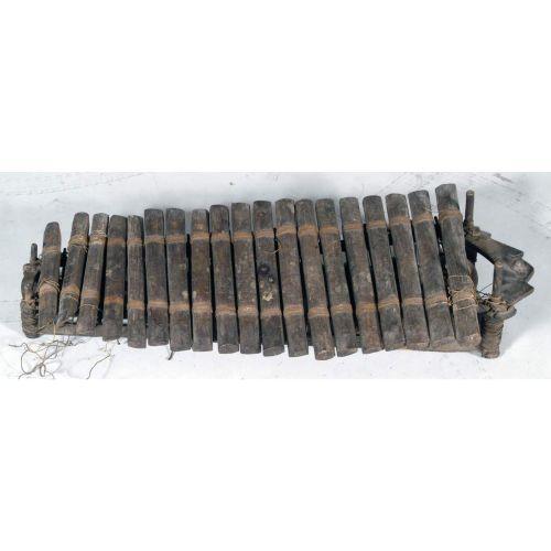 AFRICAN MUSICAL INSTRUMENT, 41" long, with 19 wooden chiming tubes, CONDITION REPORT: bindings coming loose.