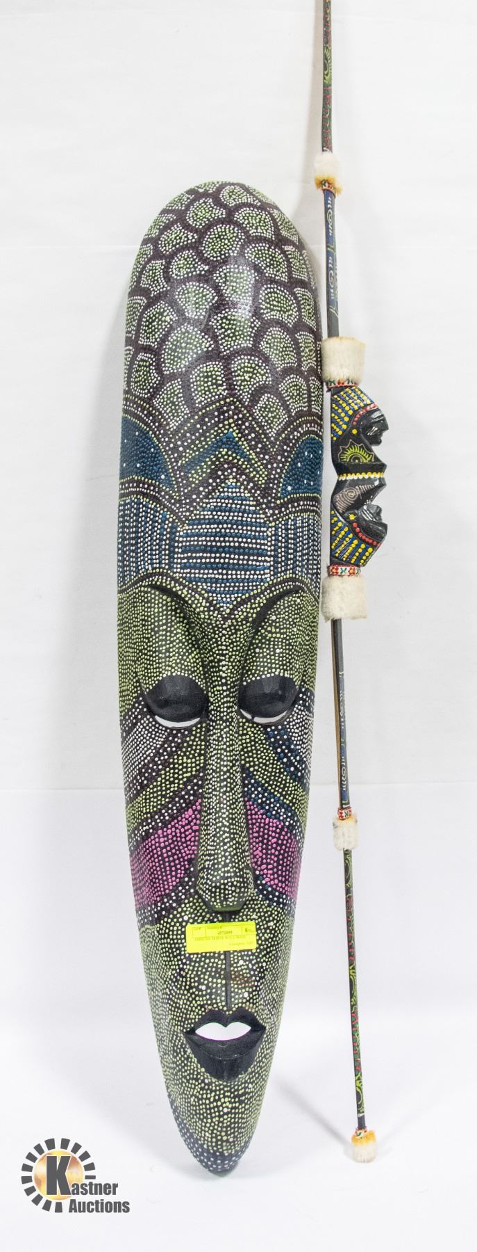 AFRICAN TRIBAL WALL MASK + TALL BOW STYLE DECOR PC