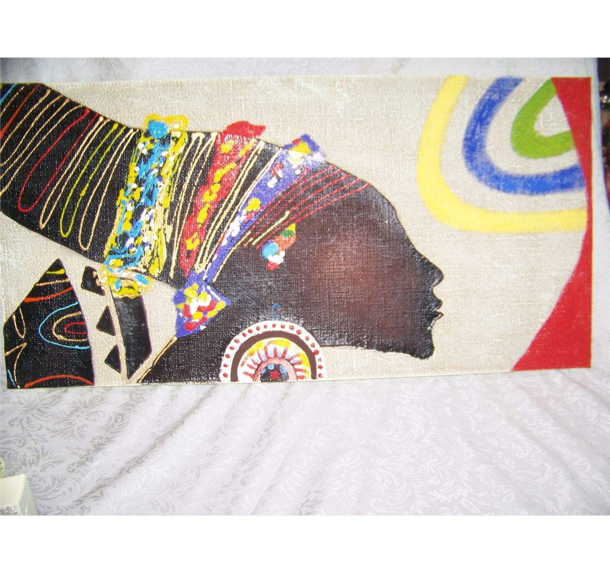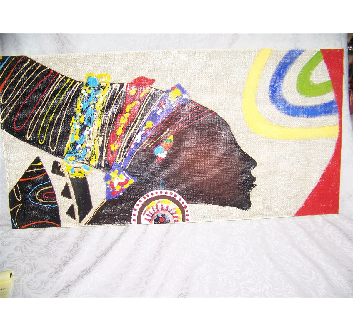 AFRICIAN PRINCESS ORIGINAL OIL ON CANVAS & MIXED MEDIA PAINTING