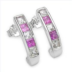 Multi Sapphire & Sterling Silver Earrings. Earrings have 10 princess cut multi sapphires channel set in .925 Sterling Silver. Sapphire ctw: 1.5....