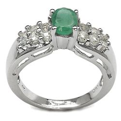 1.69 CARAT GENUINE EMERALD & WHITE TOPAZ .925 STERLING SILVER RING64402 - 1.69 CARAT GENUINE EMERALD & WHITE TOPAZ .925 STERLING SILVER RING