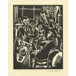 Max Unold "In Memorium Rene Beeh" signed original woodcut - Medium: original woodcut. A lovely German Expressionist composition depicting...