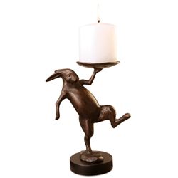 CAFÉ BUNNY CANDLEHOLDER - 9"H 5.5"W 3.5"D - CAST IRON - BRONZE FINISH