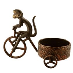 BICYCLE MONKEY PILLAR CANDLE HOLDER - 7.5"H 10"W 5"D - CAST IRON