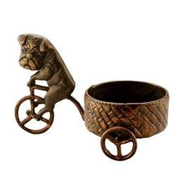BICYCLE BULLDOG PILLAR CANDLEHOLDER - 6"H 9"W 5"D - CAST IRON