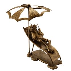 SUN BATHING FROG - 10.5"H 10.5"W 11"D - ALUMINUM